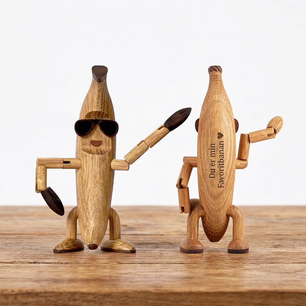 Benny Banan Den sejeste Frugt i Frugtskålen! Mød Benny Banana, den mest afslappede og funky træfigur fra Spring Copenhagen! Med sine stilfulde solbriller og sin ikoniske “dab”-pose bringer Benny ren good vibes og en tropisk stemning til ethv