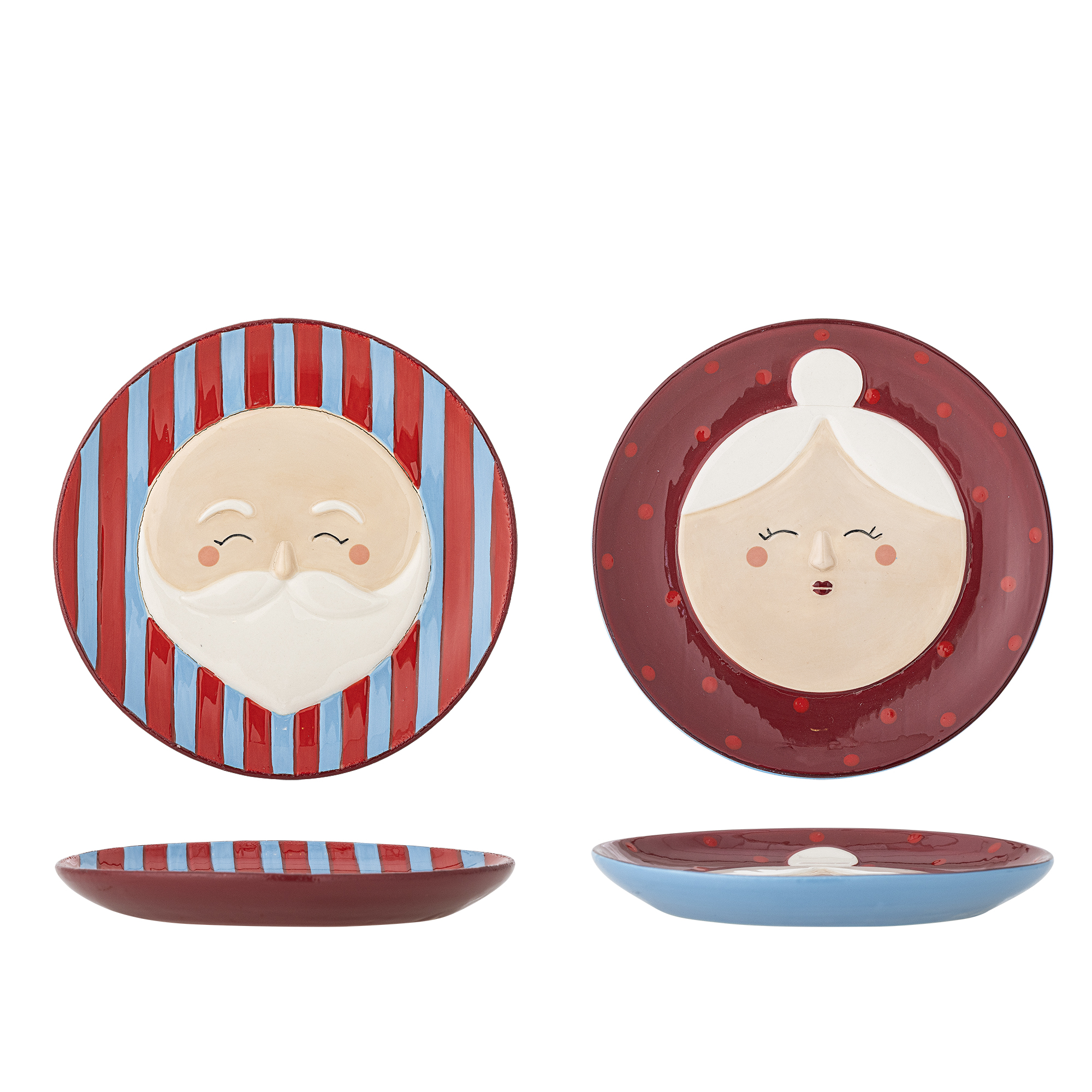 Granny Tallerkenen fra Bloomingville er et sæt med to tallerkener i stentøj med et håndmalet og præget motiv med ansigter i forskellige dekorative stilarter. Der kan forekomme variationer i farveintensiteten, så hver tallerken er unik.
