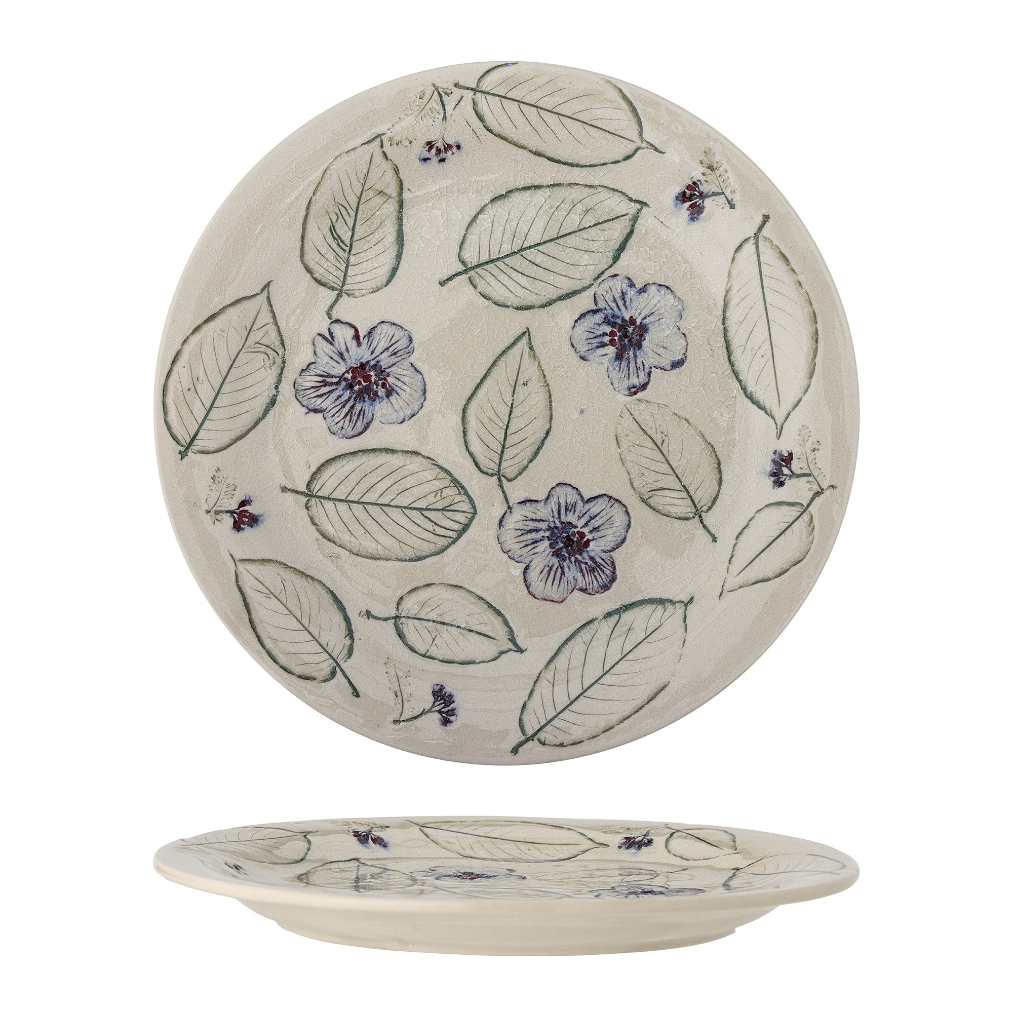 Marlem Fadet fra Creative Collection er inspireret af naturen og malet i hånden. Det smukt håndmalede fad har et præget mønster med grønne blade og blå blomster. Fadet er lavet af stentøj.
