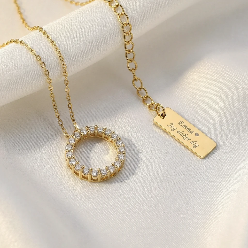 Cirkel halskæde, m. zirkoner, 14mm | Forgyldt sølv | Joanli Nor