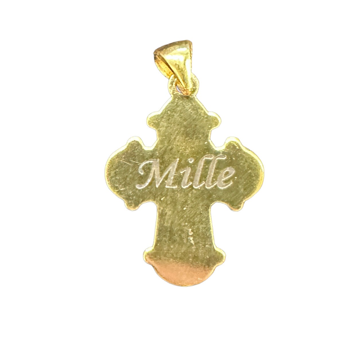 Flot 8 kt. guld kors med forgyldt kæde. Et smukt 8 kt. guld kors med mat bagside og blank forside og afrundede hjørner på forsiden Vigtigt vedrørende retur og reklamation Da produktet er færdiggraveret, kan det desværre ikke returneres. Varen er en 2. sor