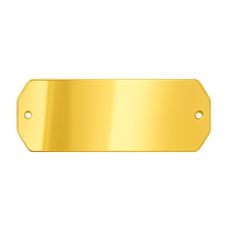 Rustfri stålskilt 2 hullerEt elegant og enkelt metalskilt i børstet rustfrit stål. Skiltet har afrundede hjørner og to forborede huller til nem montering. Perfekt til gravering af navn, titel eller anden information. Ca. mål: 17 x 5,5 cm messing blank Bø