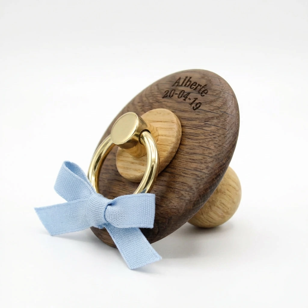 Flot og helt unik træsut fra Römer Design, hvor vi kan lasergraverer ønsket tekst på selve sutten. Træsutten bliver leveret i en smuk gaveæske, hvor sutten ligger godt beskyttet. Der medfølger også et kort tegnet af Michelle Carlslund ( 12 x 12 cm ) samt