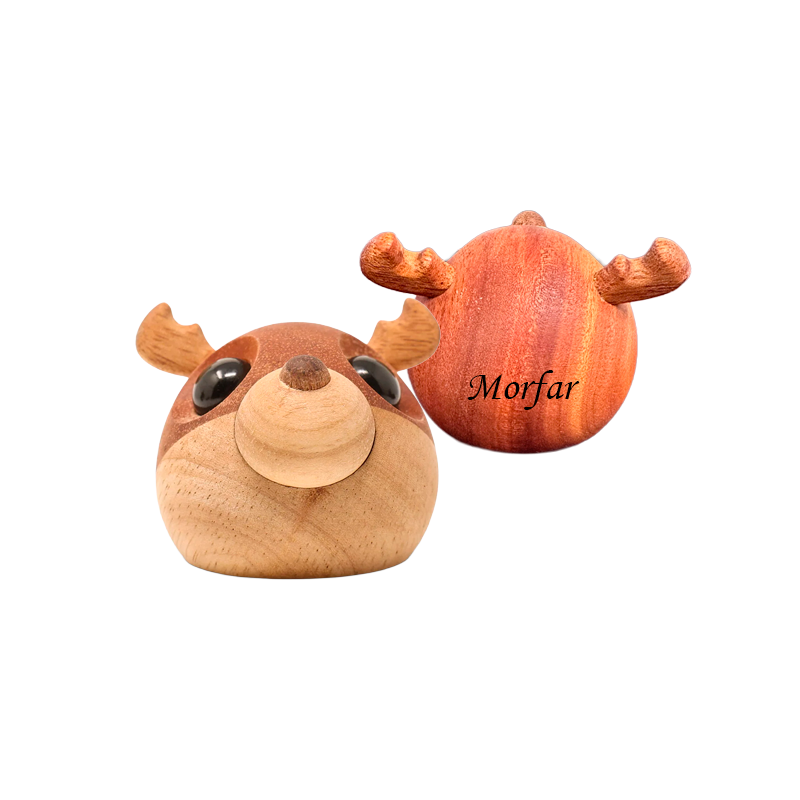 Nuttet rensdyrfigur der spreder julestemning Håndlavet i mahogni og gummitræ Magnetisk bund kompatibel med FableWood universet Mulighed for personlig gravering op til 15 tegn Mål H 5 cm L 5 cm B 5 cm Vægt 50 g Kaj det lille rensdyr i træ | Mulighed for g