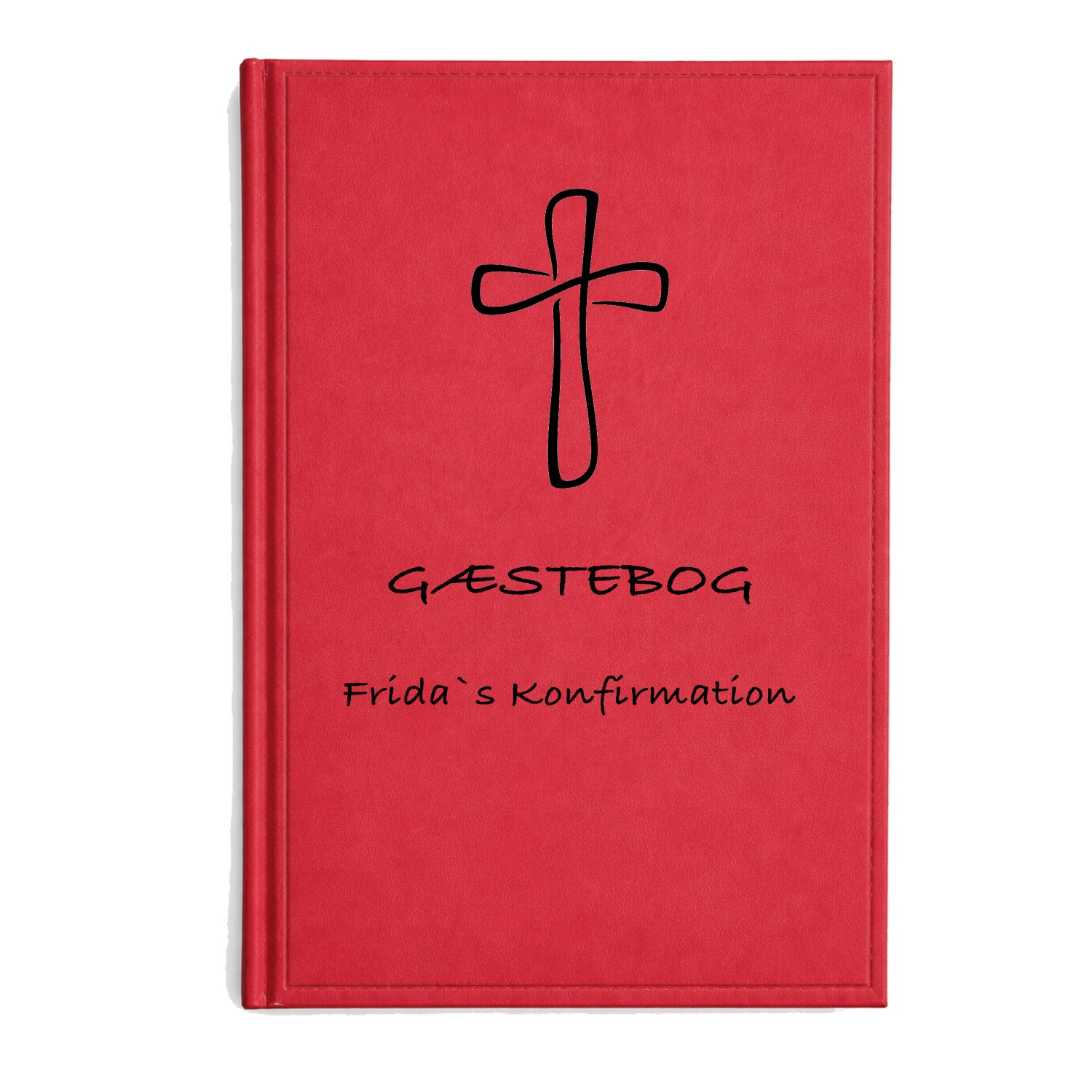 Rød gæstebog Gratis gravering på forsiden B5 Uden linjer Giv en personlig og mindeværdig gave til konfirmationen med en elegant notesbog i lækkert materiale. Denne notesbog er ideel som gæstebog, dagbog eller til gode minder fra den store dag. Vi tilbyd