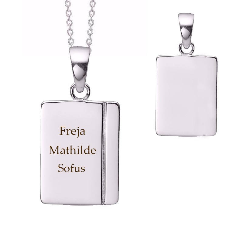 sølv dogtags 15 x 20 mm Sølv kæde Guld og sølv design Gratis gravering Smukt og elegant vedhæng i 925 sterling sølv. Den rektangulære plade måler 1,5 x 2 cm og har en fin graverede plade på forsiden, som giver et eksklusivt og personlig udtryk. På bag
