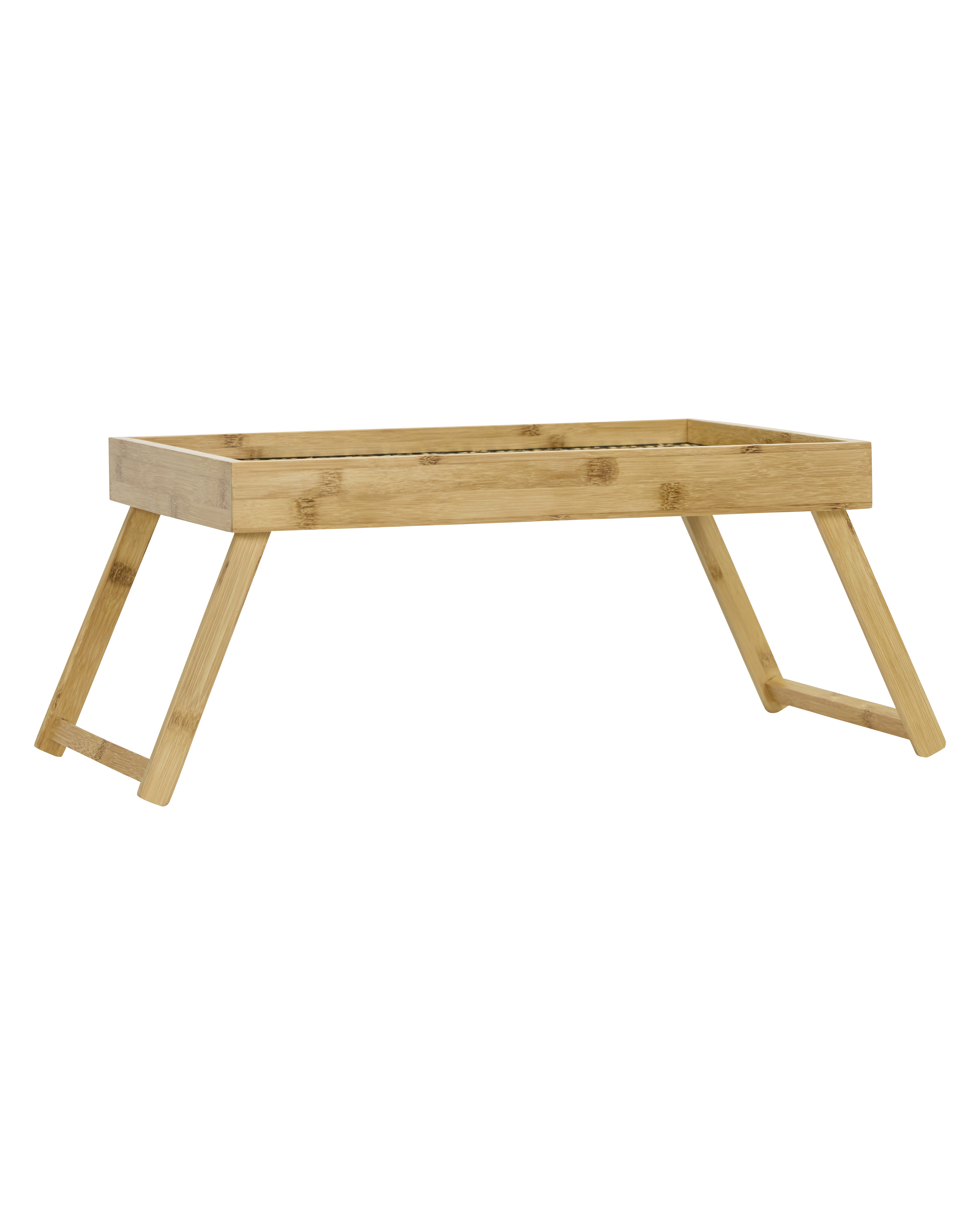 Bakkebord med ramme og ben i bambus, samt en vævet overflade lavet af sorte og naturfarvede palmeblade. HDTray er ideelt som serveringsbakke, sidebord eller som dekorativt stilleben.- Med vævede palmeblade.- Foldbare ben.- Tofarvet grafisk mønster i sort
