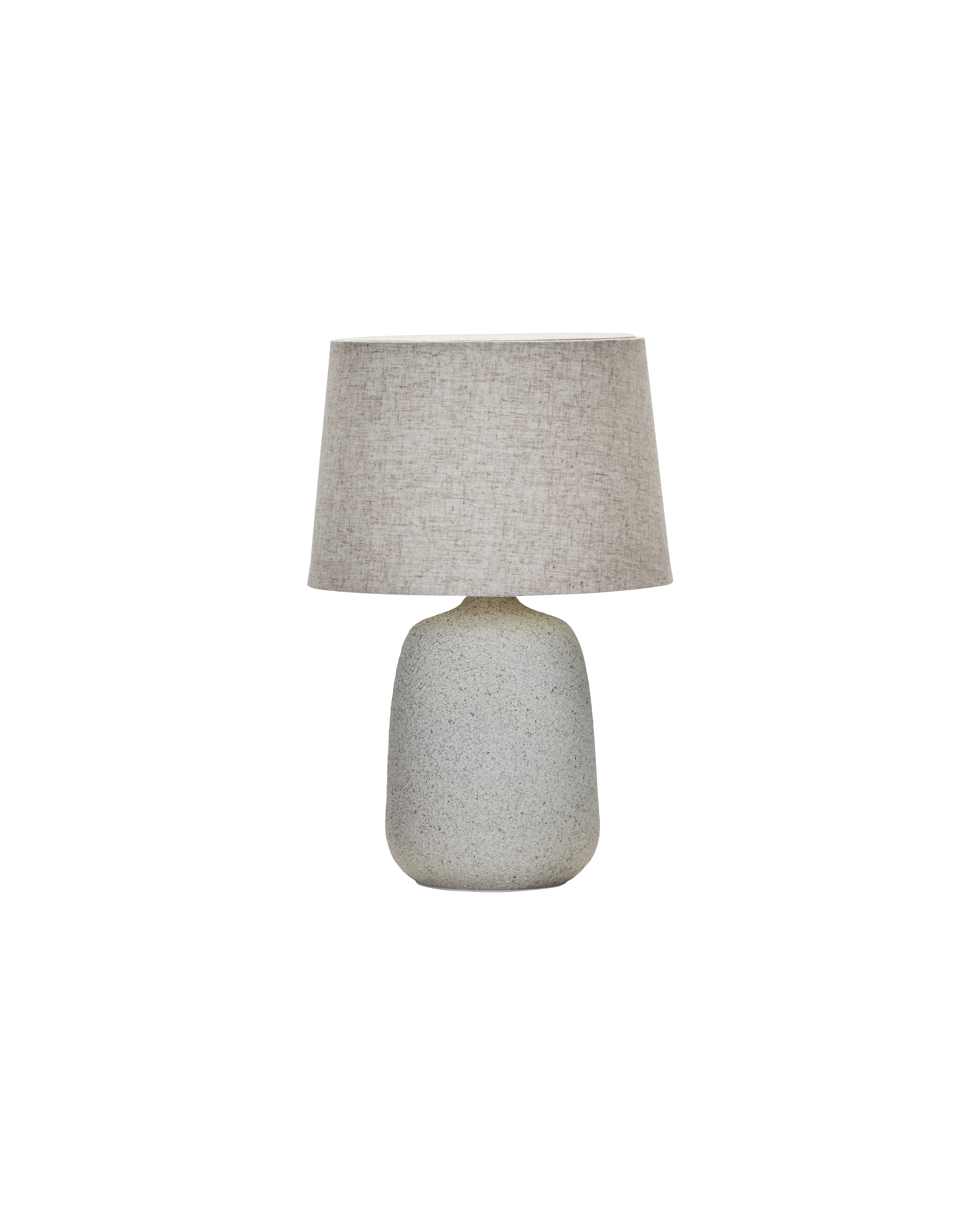 Med Tana fra House Doctor får du en bordlampe og et skulpturelt stykke kunst på én gang. Kombinationen af en lampefod i stentøj og en stofskærm giver dig en harmonisk sammensætning af strukturer. Lad de lyse, moderne farver skille sig ud i din stue, eller