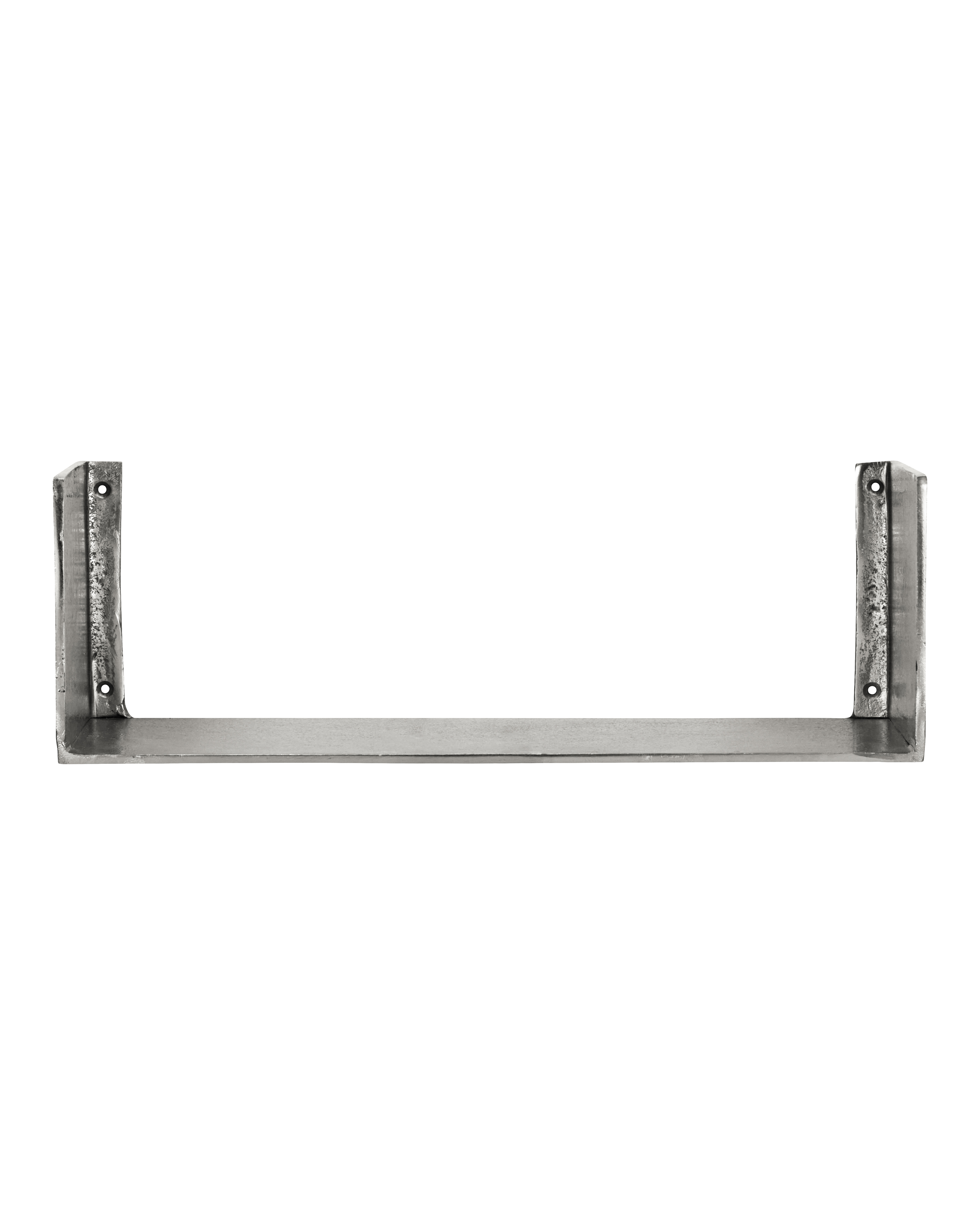 Giv hjemmet et råt og stilrent twist med denne håndlavede væghylde i aluminium og sølvfinish. Det minimalistiske design og de lukkede sider giver karakter til både køkken, stue og soveværelse.- Håndlavet i aluminium.- Rå, sølvfarvet finish.- Praktiske luk