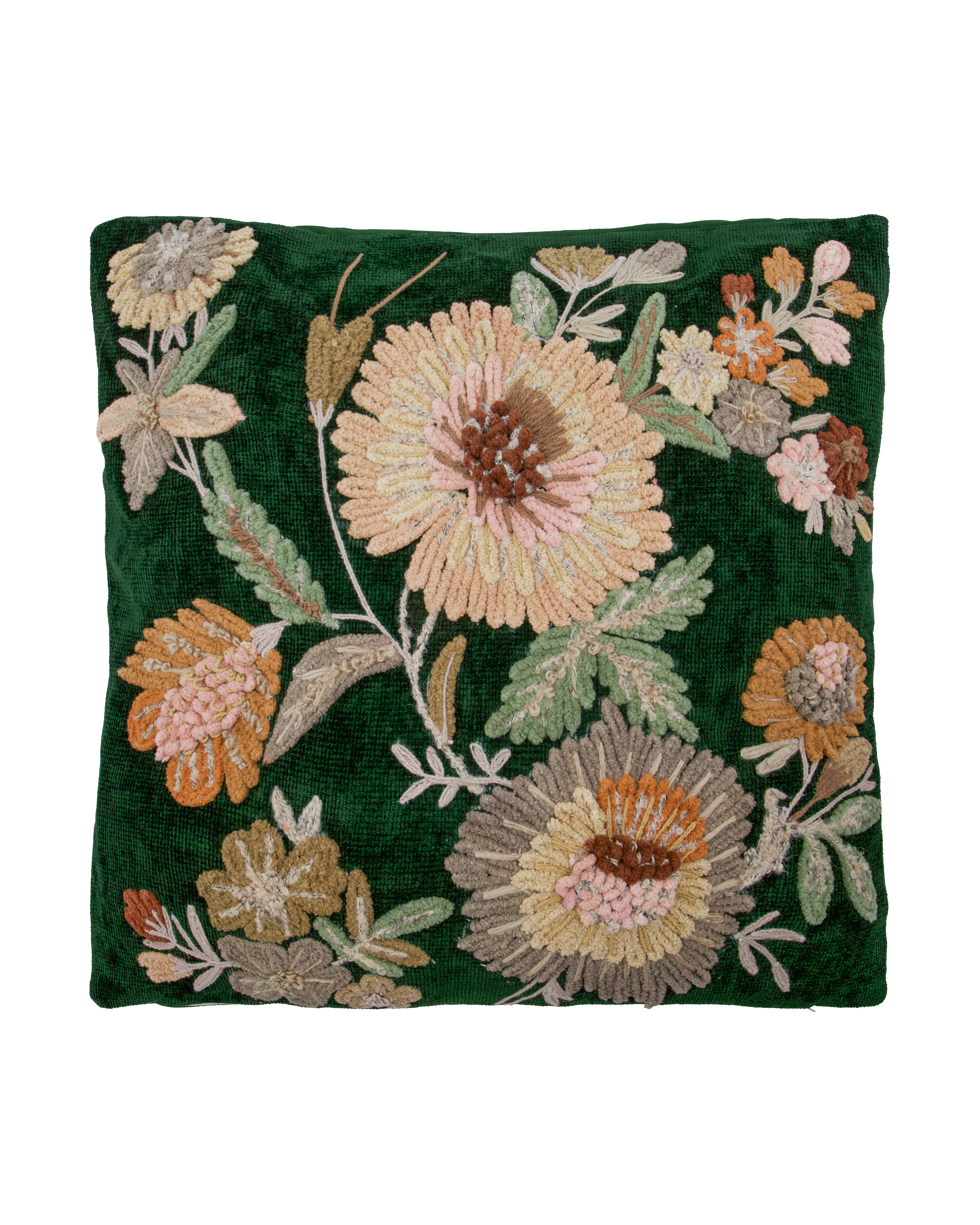 Det tætte bomulds- og viskosebroderi giver HDBota-pudebetrækket en rig, tredimensionel tekstur, mens det detaljerede blomstermønster giver et elegant udtryk.- Blød bomulds- og viskoseblanding.- Kraftigt, broderet blomstermotiv.- Flatterende farver.- Håndl