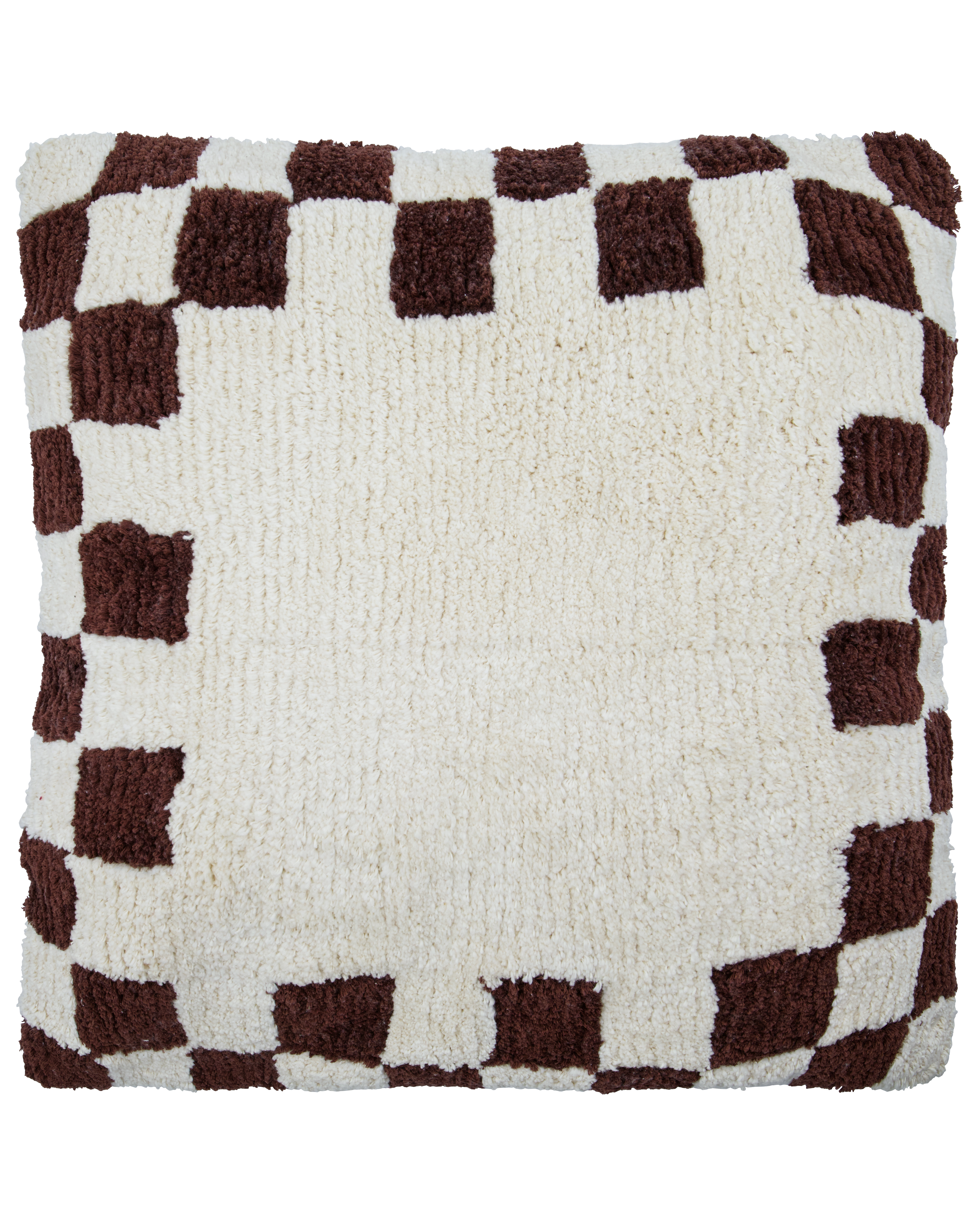Med det brune og råhvide pudebetræk får du et cool skakternet mønster, der giver kant og liv i sofaen, lænestolen eller soveværelset. Farvekombinationen skaber en rolig og varm stemning, mens bomuldsmaterialet er blødt og indbydende perfekt til hyggelige