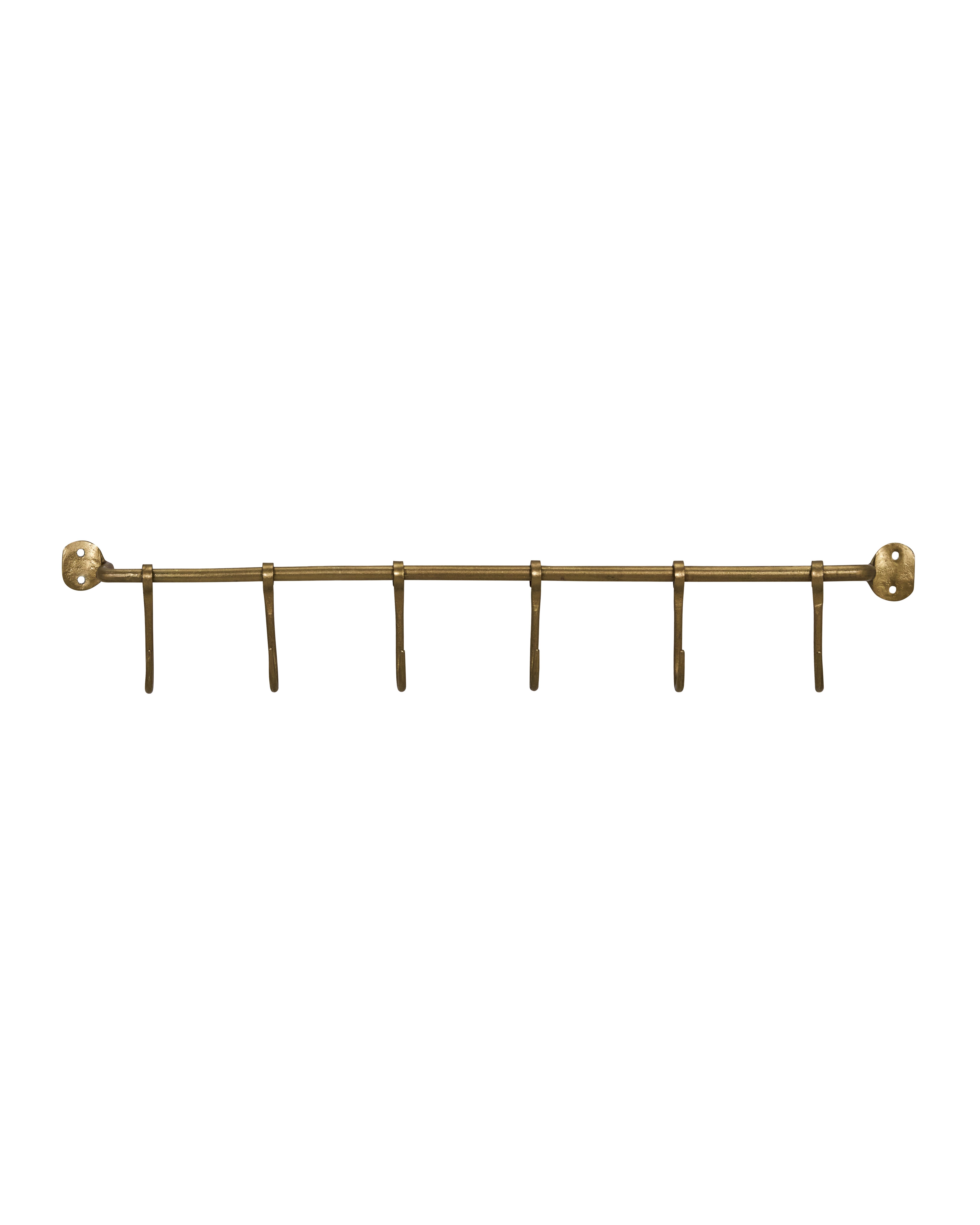 Håndlavet knagerække i messing giver dit hjem charme og personlighed. Seks flytbare kroge gør det enkelt at organisere jakker, tasker eller køkkenudstyr. Brug den i entréen, i soveværelset eller på badeværelset mulighederne er mange.- Håndlavet i jern- M