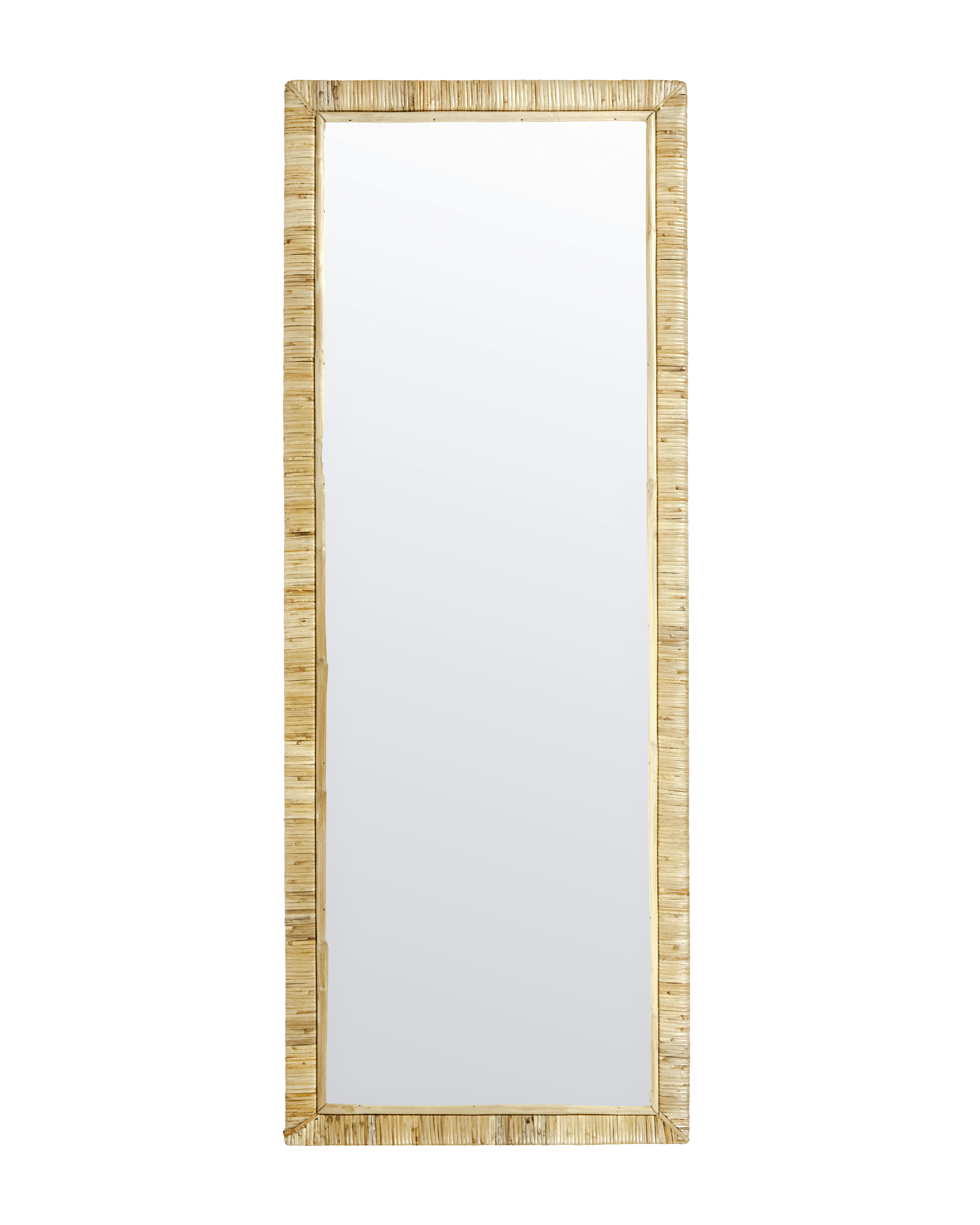 Tilføj et strejf af naturlig elegance til dit hjem med dette unikke spejl, der har en ramme lavet af en blanding af stok og mangotræ. Dette håndlavede stykke, afsluttet i en varm naturlig tone, tilbyder en distinkt charme. Spejlet kan hænges både lodret o