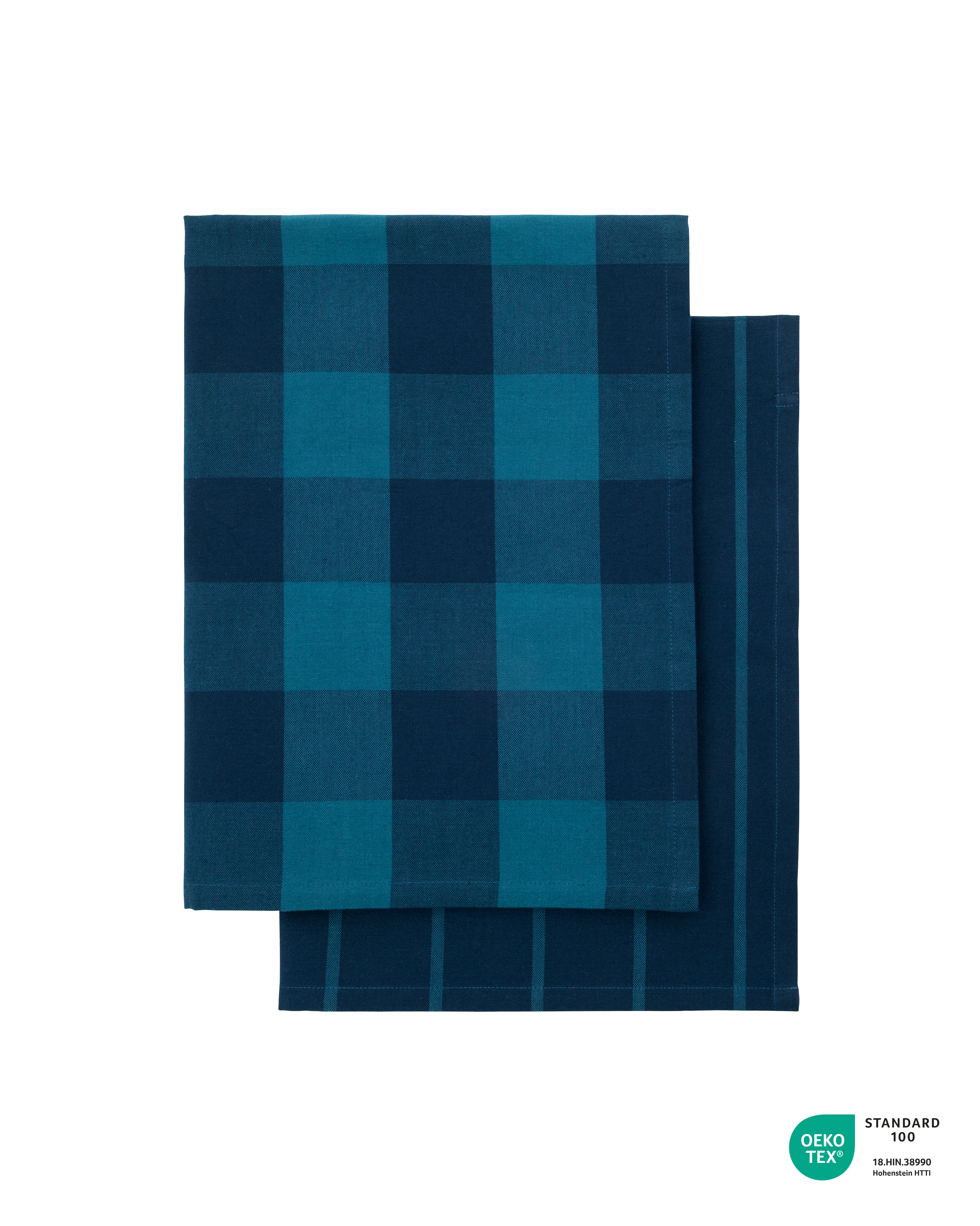 Disse viskestykker i bomuld giver et strejf af efterårscharme til dit køkken. Sættet består af to stykker med en kombination af tern og striber i dybe blå og petroleum-nuancer, som giver et dejligt strejf af farve til dit kulinariske rum.- 100 % bomuldsma