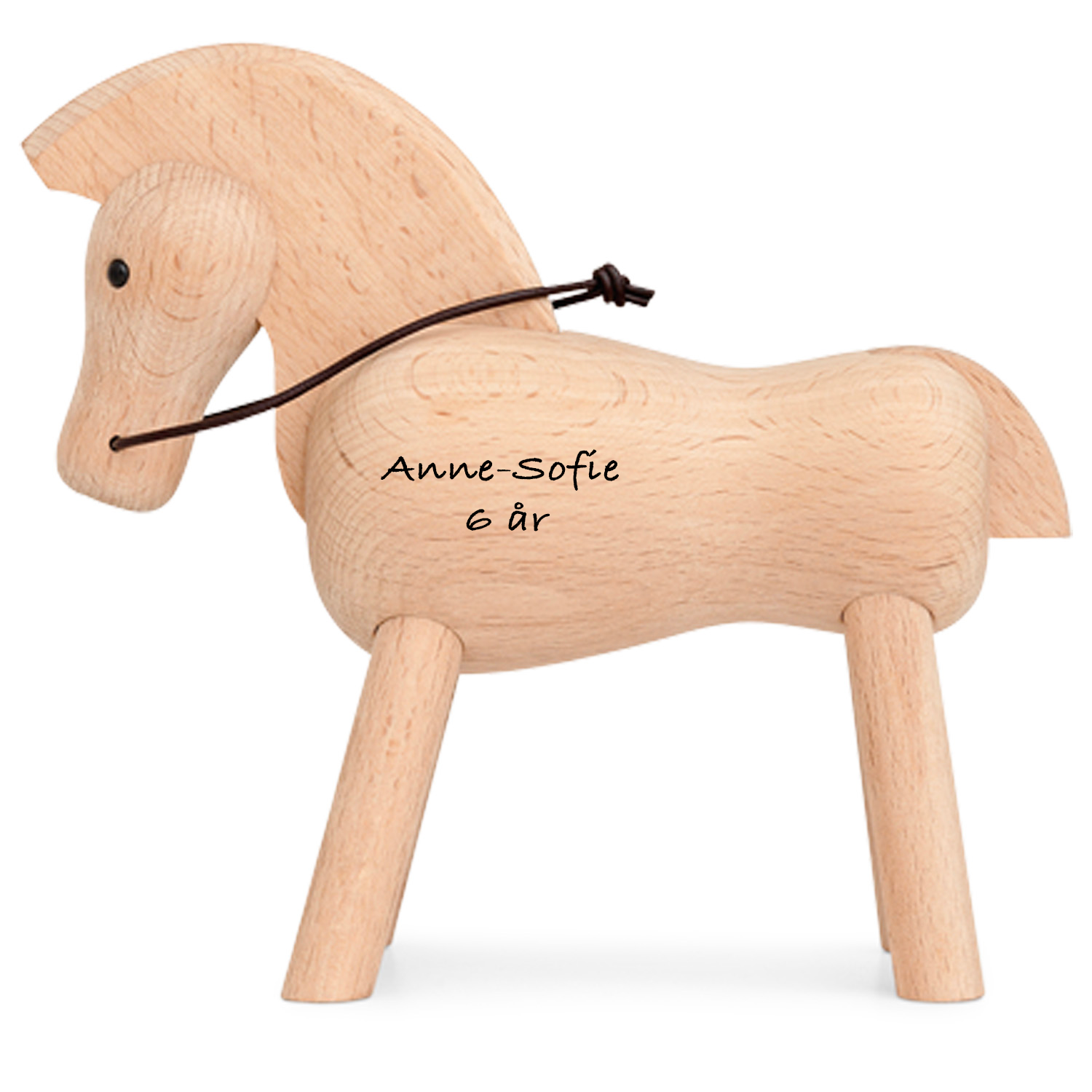 Hest ubehandlede bøg Flot design til hjemmet FSC®-CERTIFICERET Kay Bojesen Design Gratis gravering Kay Bojesens hest er i massiv bøgetræ og med læderrem om halsen.Hesten måler 14 x 15,5 cm og er lavet i lys bøg. Hesten kan lasergraveres med din egen tekst