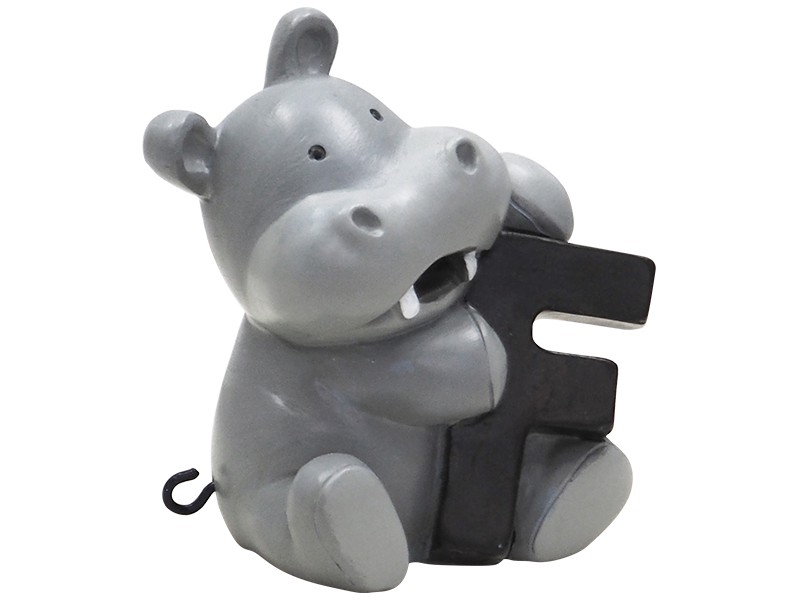 F bogstav til navnetog Håndmalet polyresin L:4,5xH:5,5xB:4 cm Kids By Friis F bogstav med en flodhest til sammensætning af navnetog. Sammensæt med lokomotivet og andre bogstaver fra Kids by Friis så det bliver til et samlet personligt navnetog. Meningen m