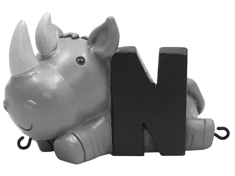 N bogstav til navnetog Håndmalet polyresin L:6xH:4,5xB:4,5 cm Kids By Friis N bogstav med et næsehorn til sammensætning af navnetog. Sammensæt med lokomotivet og andre bogstaver fra Kids by Friis så det bliver til et samlet personligt navnetog. Meningen m