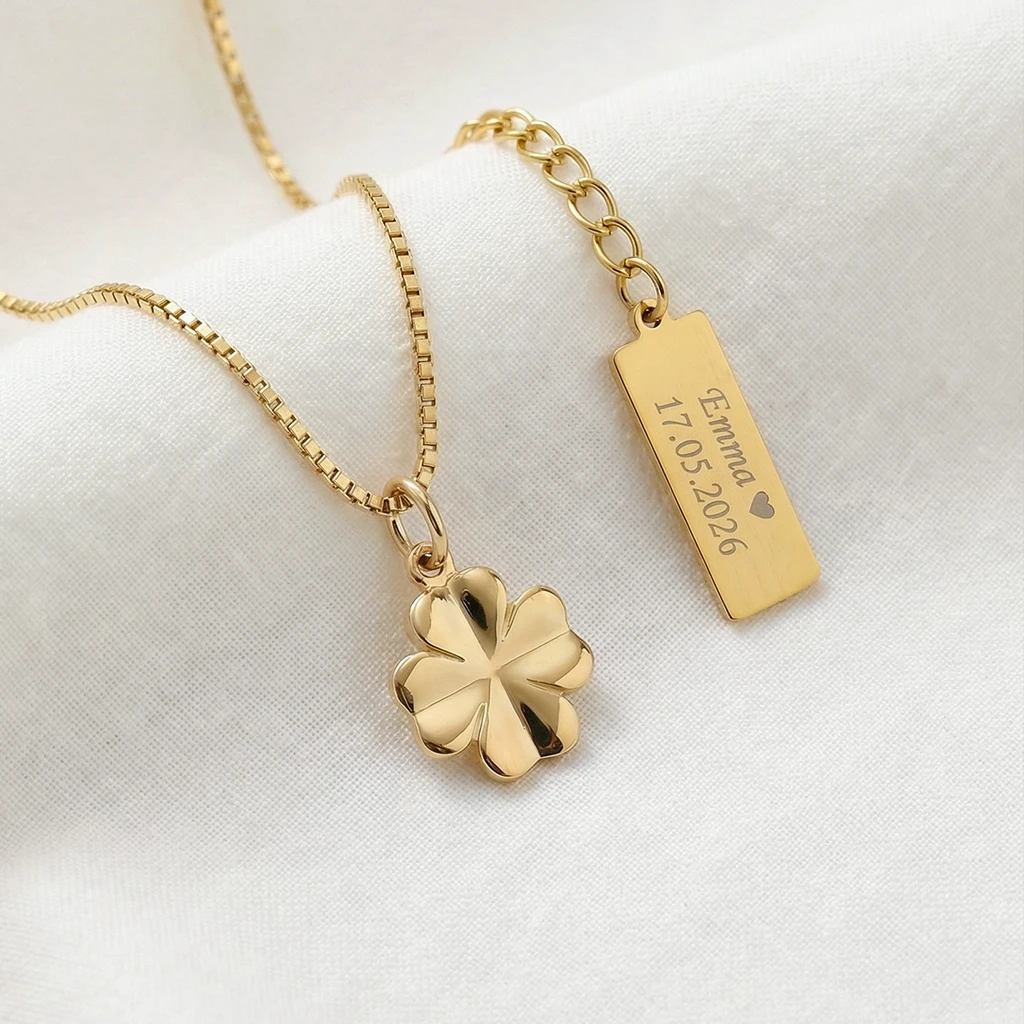 Kløver halskæde med gravering, 8 kt. guld | Siersbøl
