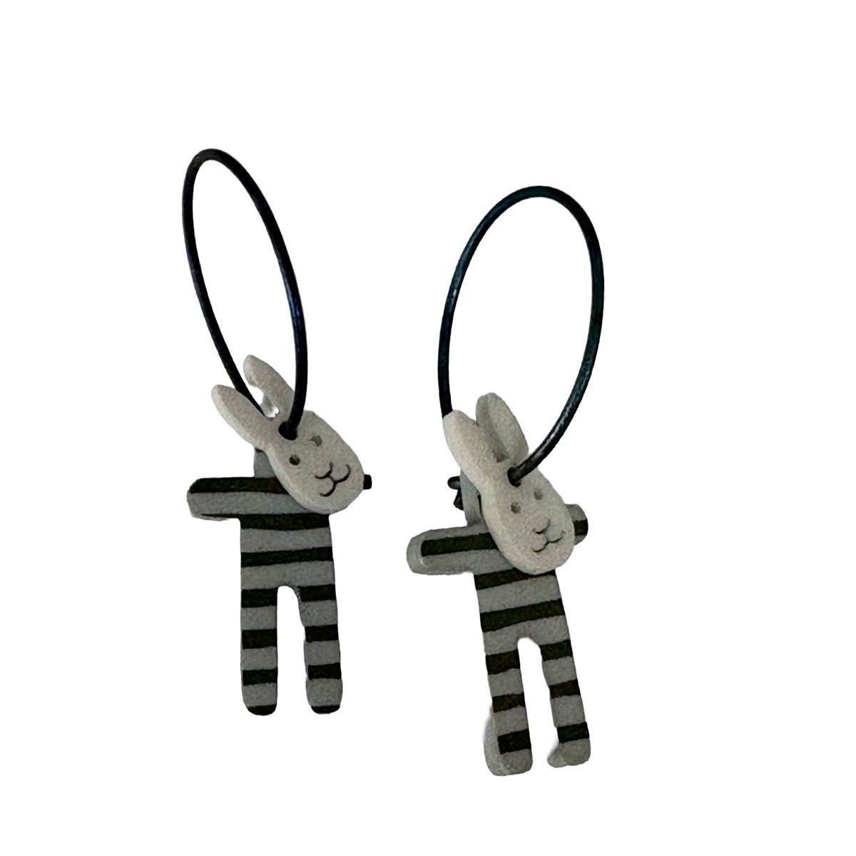 inurlige og legesyge øreringe fra det danske firma Lene Lundberg, kendt for deres kreative og farverige designs. Øreringene er fremstillet med en hypoallergen hoop i titanium, som gør dem behagelige at bære også for sarte ører kombineret med et fint og