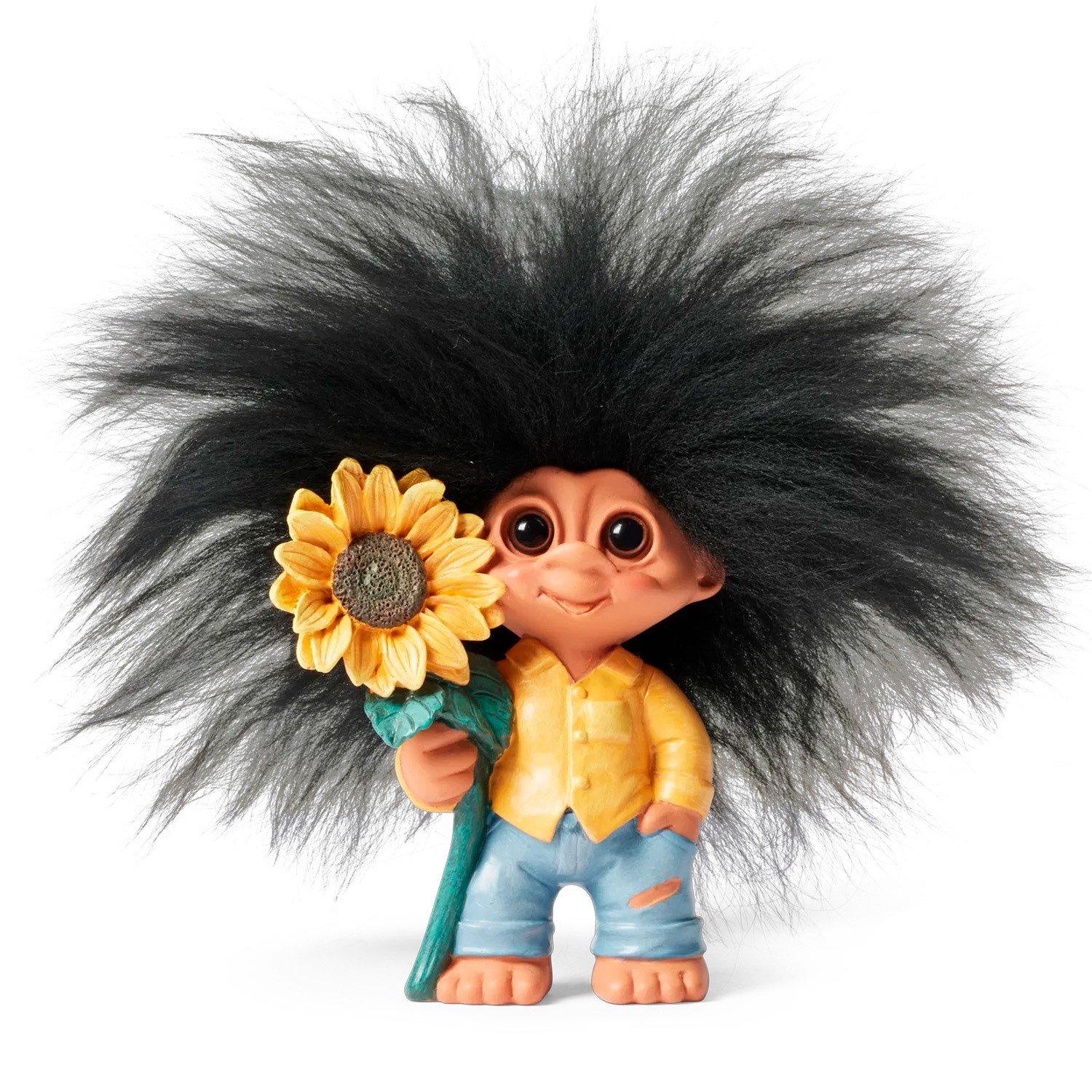 Hyggelig figur med en glad solsikke Sjov og kærlig gaveidé Klassisk Lykketrold design skabt af Thomas Dam i 1957 Elsket designfigur der spreder smil og glæde verden over Mulighed for personlig gravering på ryggen maks 10 tegn Lykketrold med solsikke 9 cm