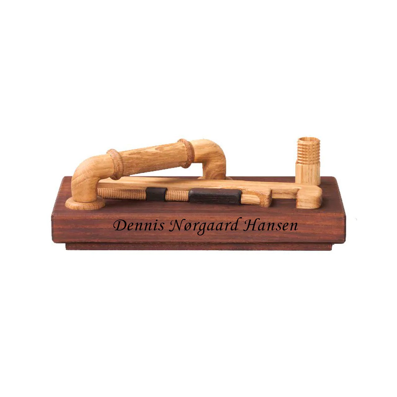 VVS statuette 9 x 18 x 6,2 cm Eg og ask Maya Soele design En statuette lavet af træ som en svendegave til en udlært VVS-tekniker er en kreativ og personlig idé. statuette med trædesign er 9 x 18 cm stor og kan graveres for at gøre den til en personlig gav