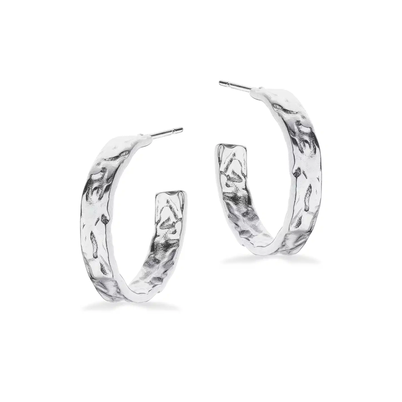 Diameter: 20 mm Materiale: sølv Overflade: Hamret finish Letvægt og behagelige at bære smukke og moderne creoler i rustfrit stål med hamret overflade, der giver et unikt og råt udtryk. De klassiske 20 mm hoops passer perfekt til både hverdag og fest. Letv