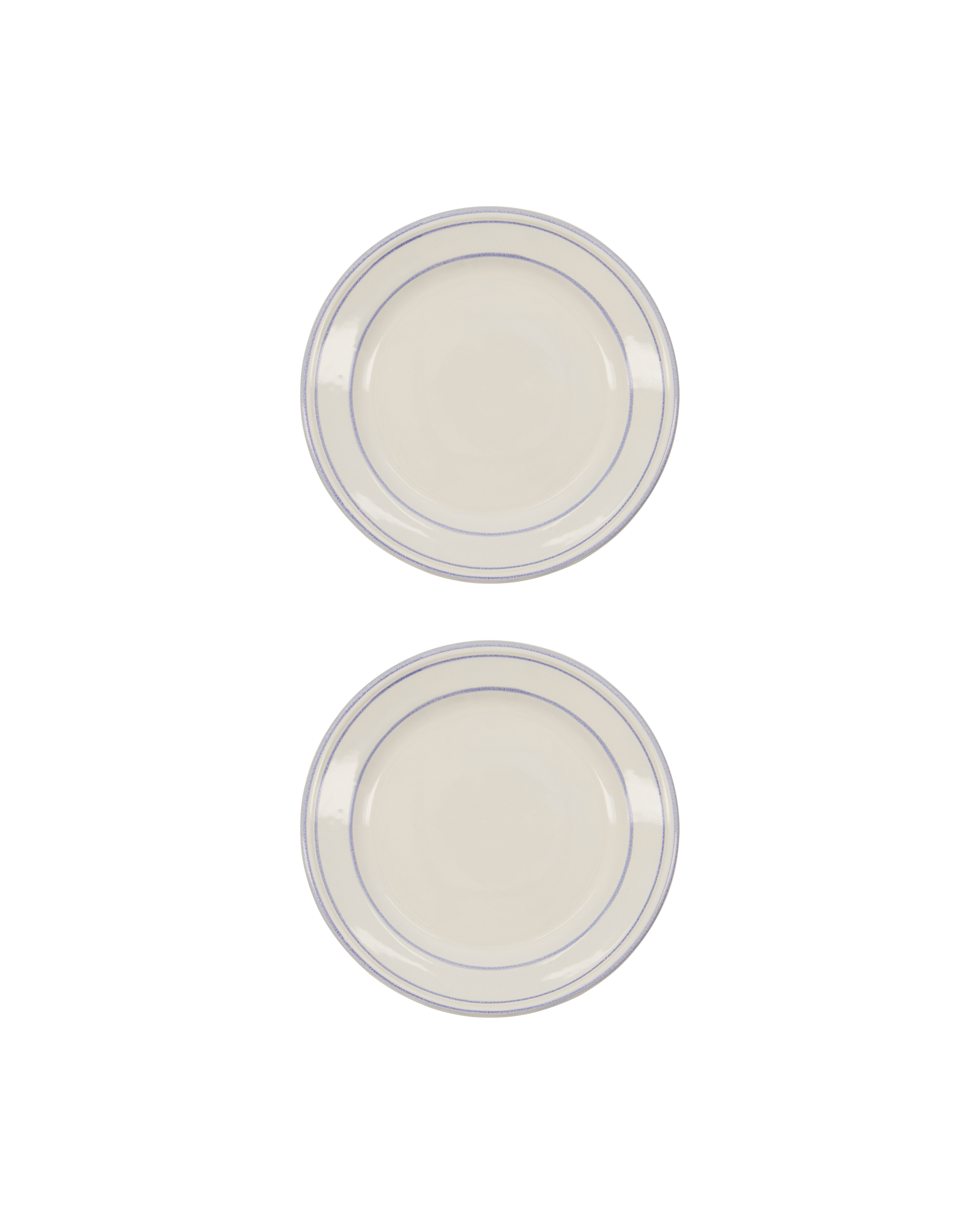 Sæt af to stentøjstallerkener med en klassisk blå detalje. Den glaserede overflade og slidstærke kvalitet giver et tidløst bistro-udtryk.- Sæt med to.- Glaseret stentøj.- Klassisk blå bistro-detalje.