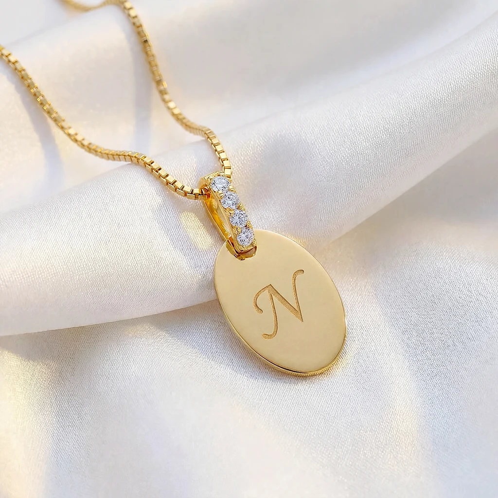 Denne elegante halskæde fra Siersbøl i ægte 8 kt. guld er et smukt og personligt smykke, der kombinerer klassisk design med eksklusiv finesse. Det ovale vedhæng har en blank, gylden overflade, som fremhæves af den fine stensatte ophængsdel med funklende z