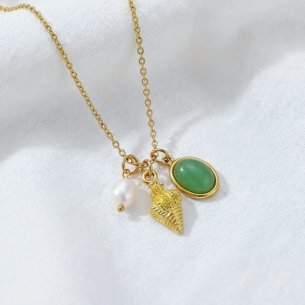 Denne elegante halskæde fra CC Jewellery kombinerer et klassisk udtryk med moderne detaljer. Halskæden prydes af tre smukke vedhæng, der tilsammen skaber et feminint og stilfuldt look. Vedhængene består af en lille ferskvandsperle, en dekorativ muslingesk