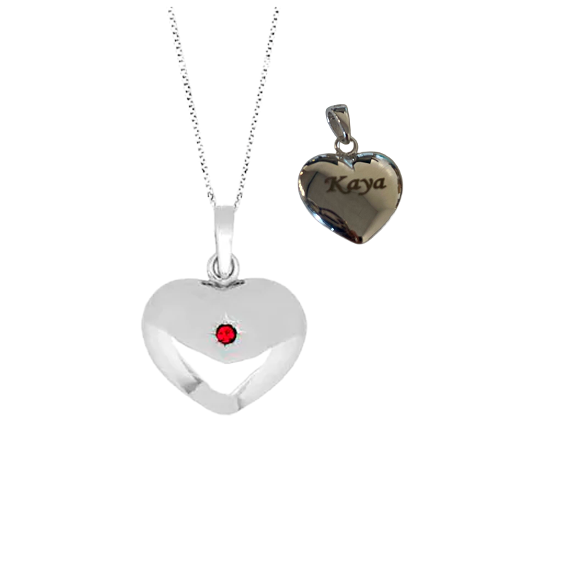Sølv hjerte med kæde ( FÆRDIG GRAVERET - KAYA )