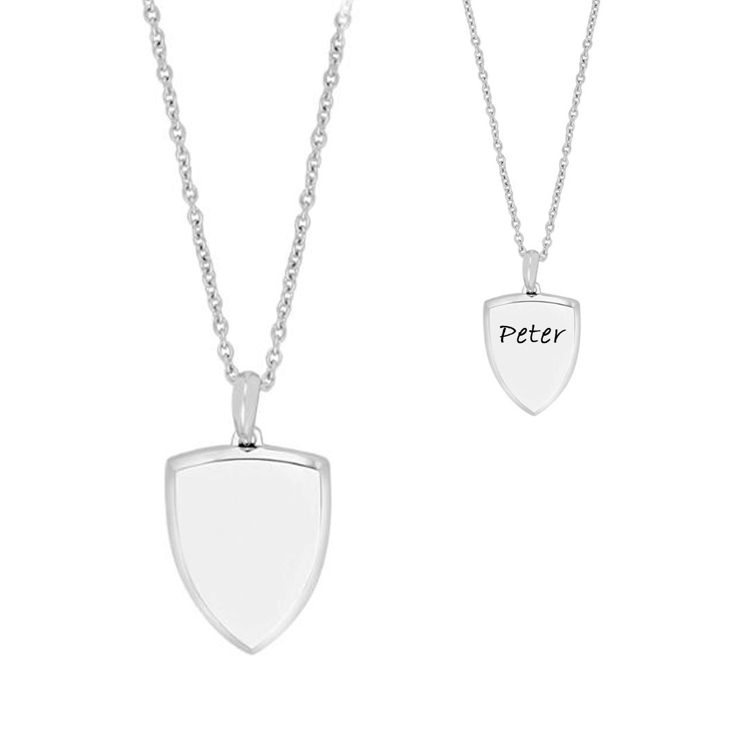 Stål Skjold Inkl. kæde Son of Noa Gratis gravering Dette herresmykke i forgyldt stål har en flot skjoldform, der måler 23 x 28 mm, og leveres med en 60 cm kæde, hvilket giver et maskulint og moderne look. Smykket kan lasergraveres med op til 30 tegn, og