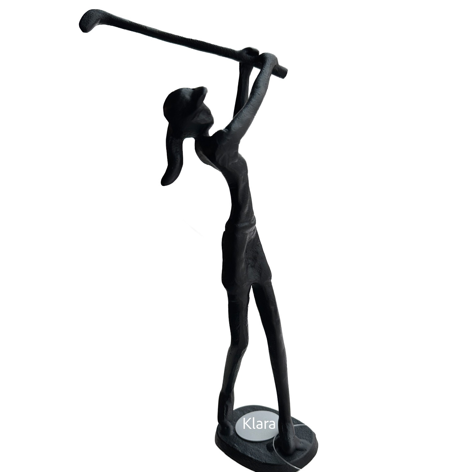 Sort metal Golf Kvinde 7x9x23 Speedtsberg Gratis gravering Denne elegante figur af en golfspiller i sort metal har et klassisk og stilrent udtryk, der passer perfekt ind i både moderne og tidløse hjem. Figuren er smukt formet i en dynamisk golfbevægelse o